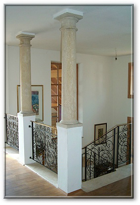 auch im Treppenhaus wurden Bauteile verwendet,welche schon etliche paar Jahre auf dem Buckel haben....Marmorsäulen und handgeschmiedete Geländerfüllungen....