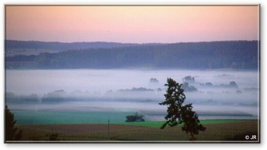 Nebelbänke im Vilstal, die Ortschaft ist versunken. Tagsüber steigt dann der Nebel langsam zu uns herauf um sich dann ganz allmählich aufzulösen....